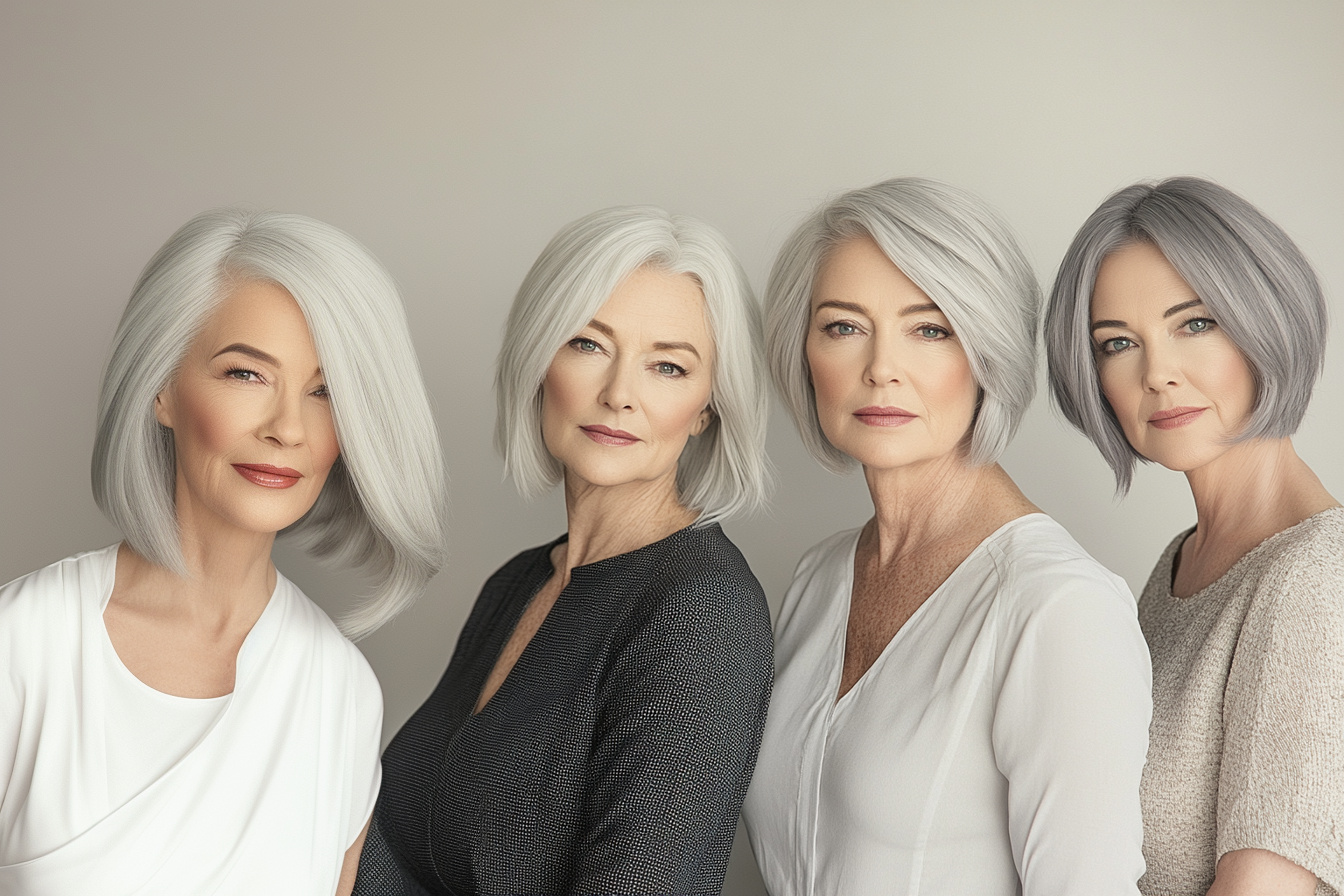 - Katie: Mid-length bob wig in silver-grey for versatile styling