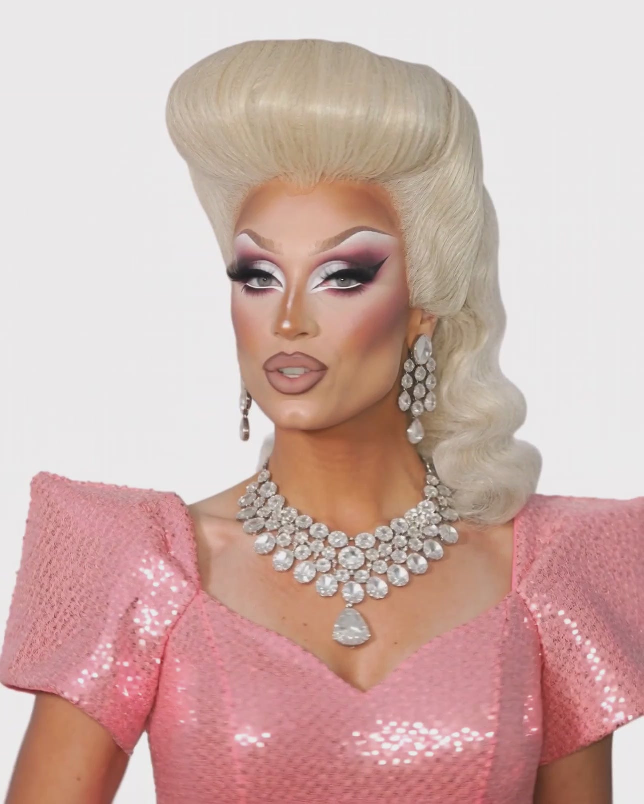 Platinum Blonde Pin Up Vintage Roll lace front wig. Pre styled and set victory roll top. Gives your vamp look a whole new style in instant. Transparent lace front. Set rolled fringe and wavy soft rear texture.