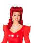 Red Pin up Vintage Roll lace front wig. Pre styled and set top. Gives your vamp look a whole new style in instant. Transparent lace front. Set rolled fringe and wavy soft rear texture.