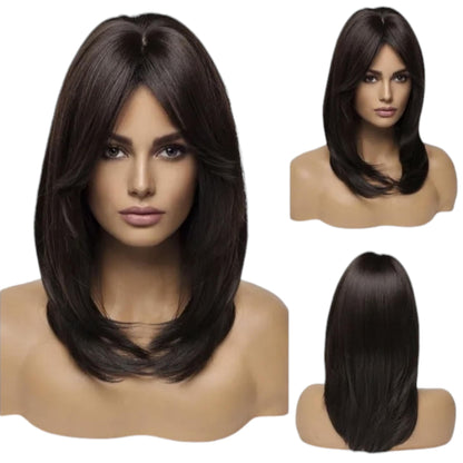 • Layered :The wig features layered shoulder length hair, giving it a style freshly blowdried look., the hairlike synthetic fibre is straight, making it easy to manage and style without any kinks or curls. If you are new to wigs it's a great option.