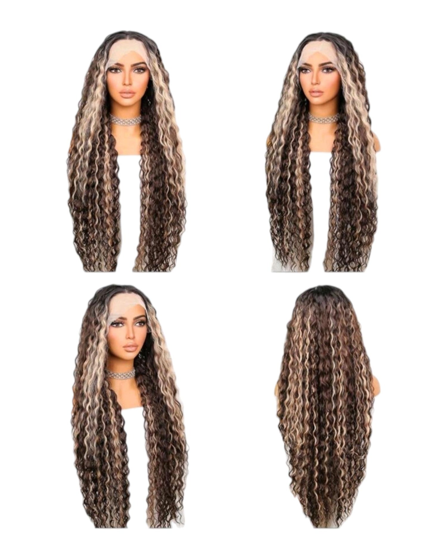 Brown Blonde Wavy T Part Lace Front Wig. Fariha.