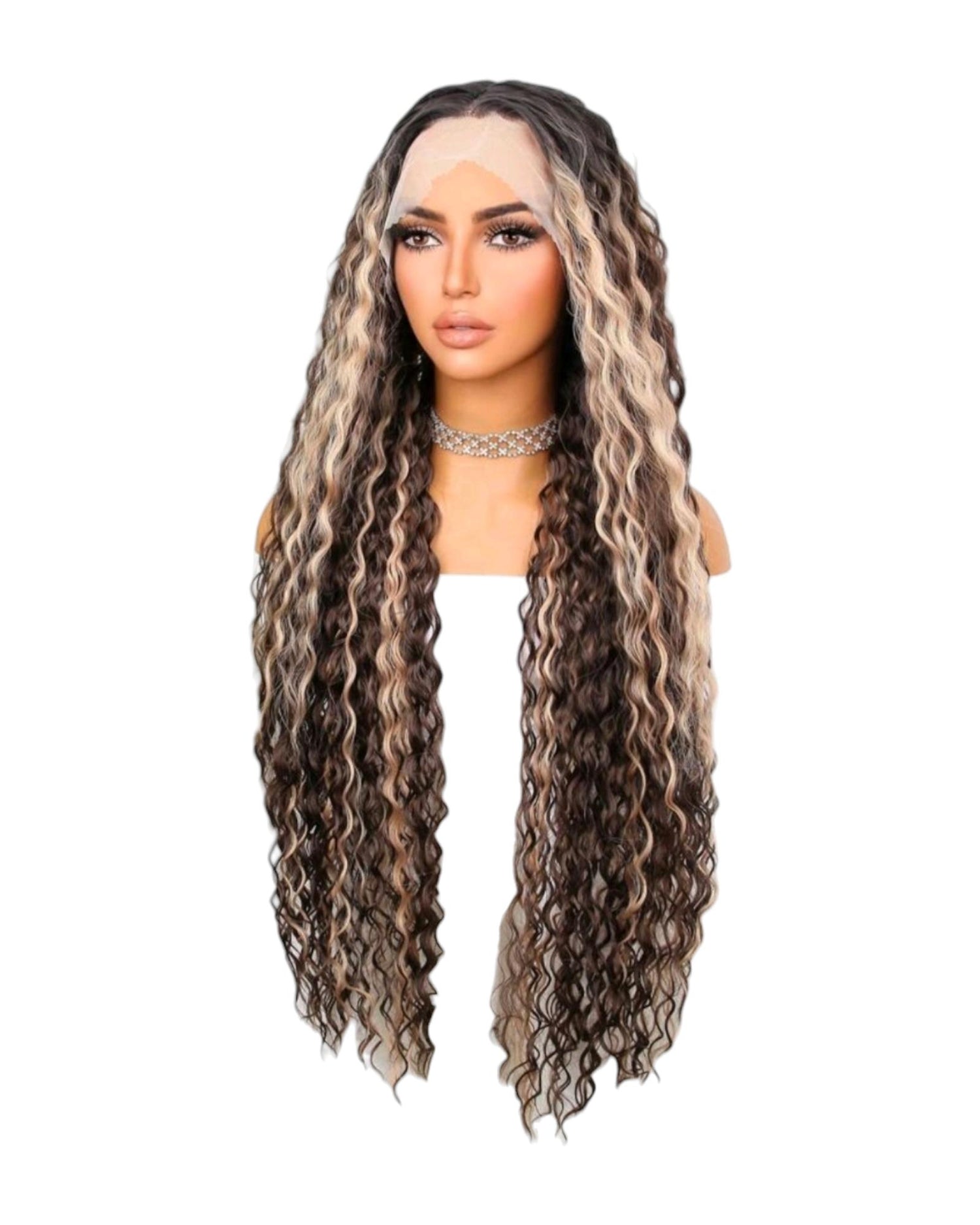 This wig features luxurious 32-inch long, voluminous curls that cascade beautifully.