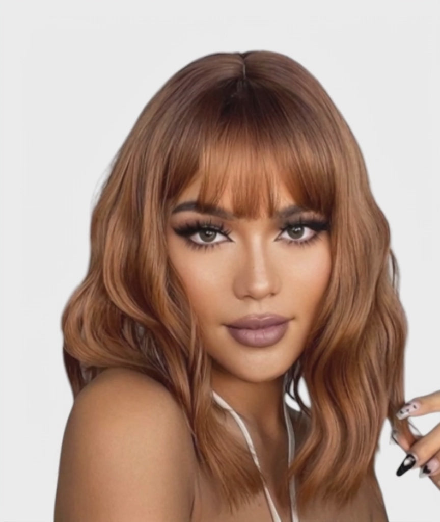 Amber Wavy Bob Wig With Fringe. Ella