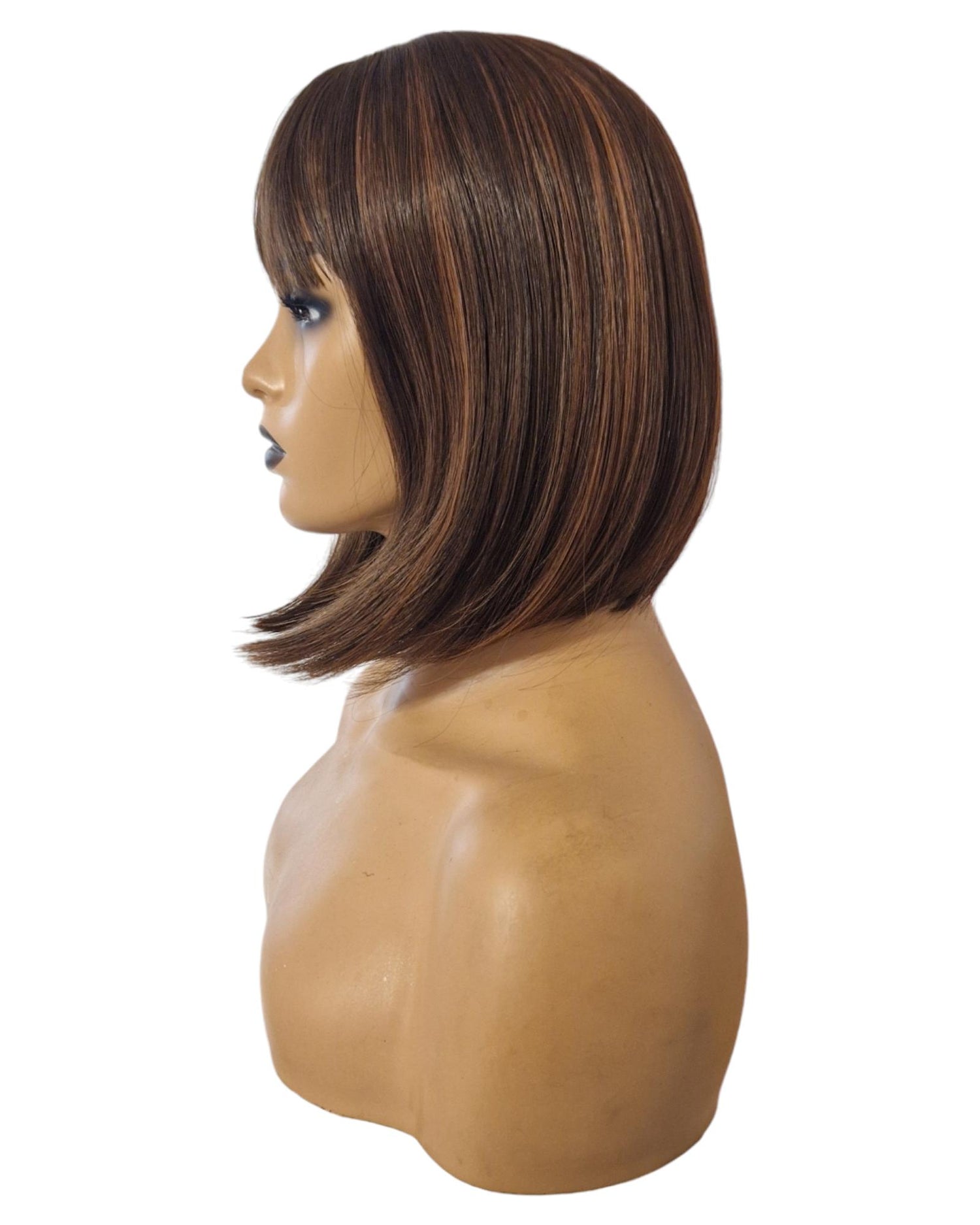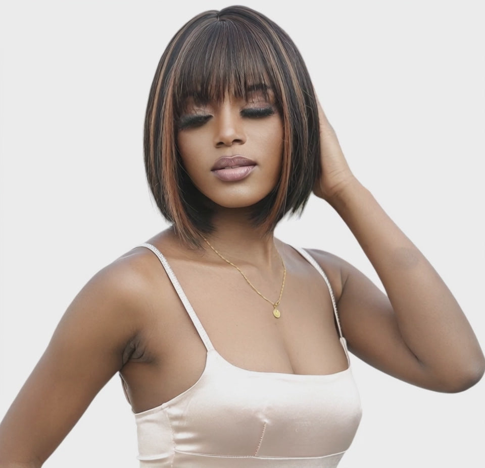 Brown Blonde Streaks Bob Cut Wig Fringe. Katie