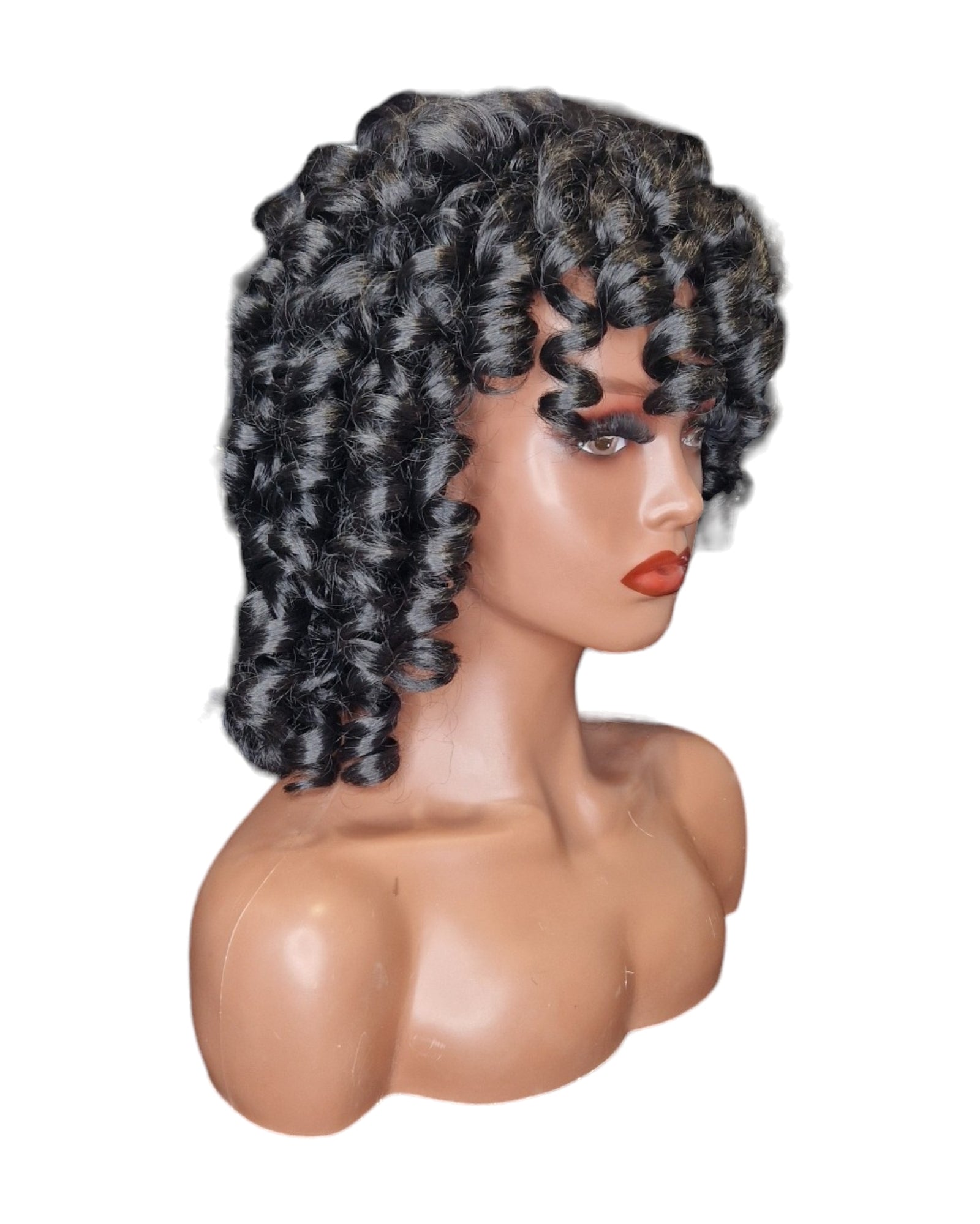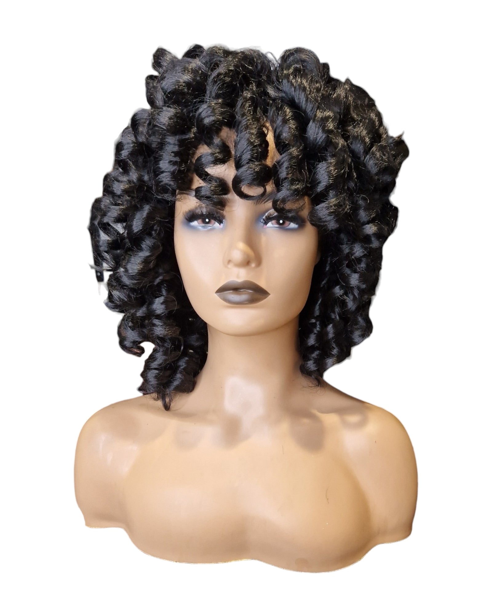Black Corkscrew Curls Coil Shareen Bob Wig.