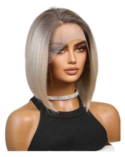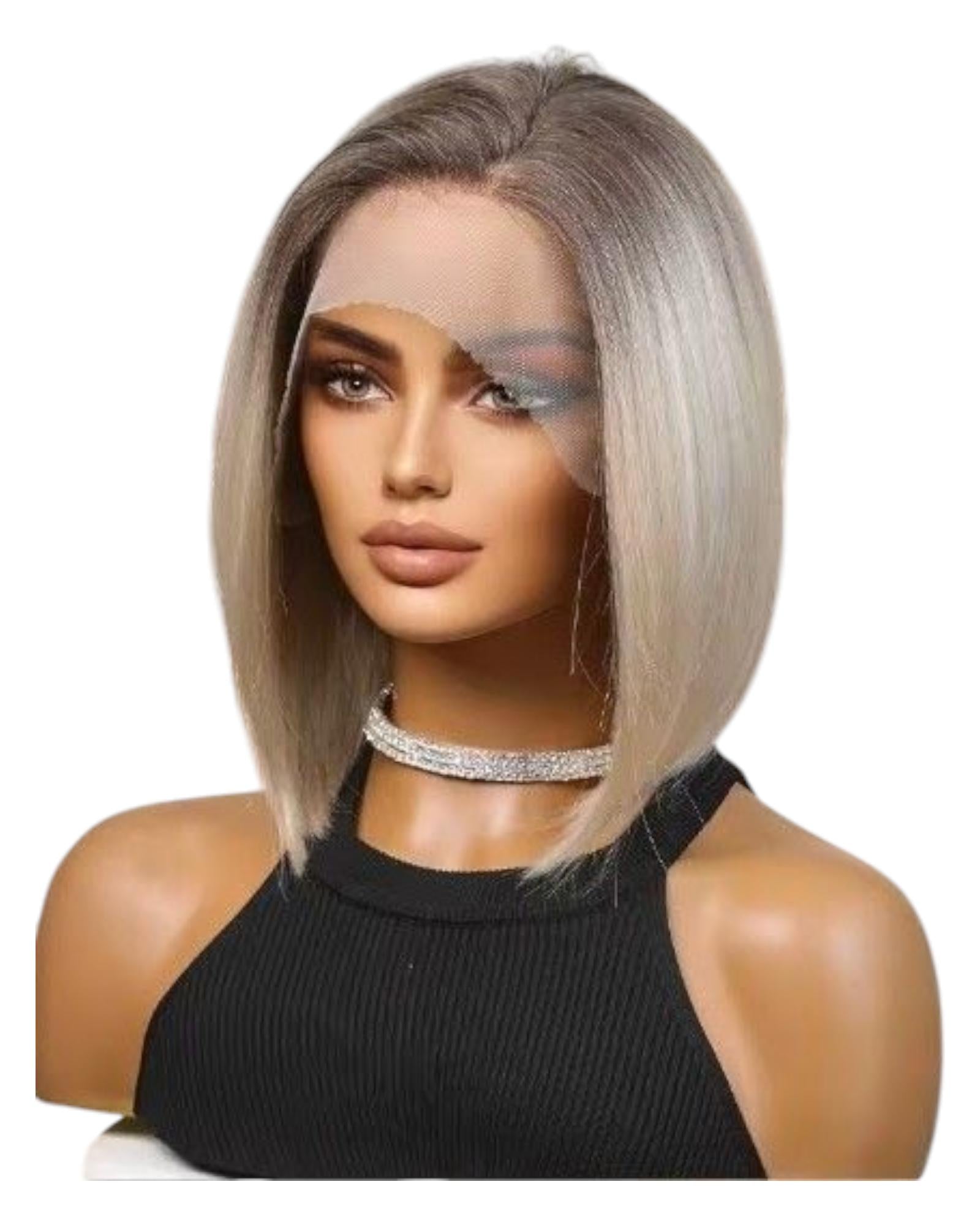 Rooted Blonde lace front sleek bob hairstyle wig.