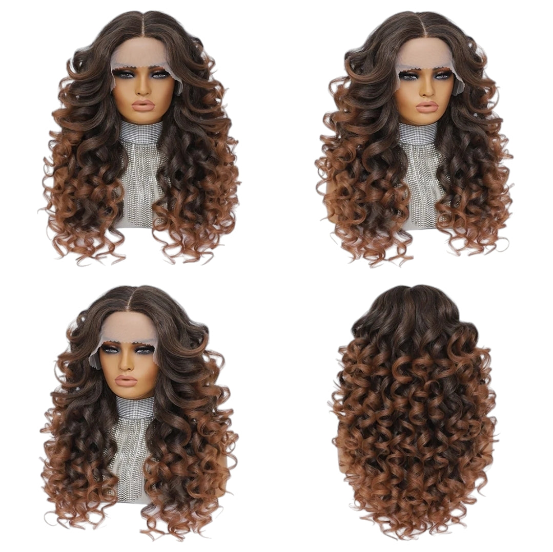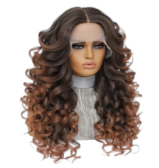 Dark Brown Caramel Curly Lace Front Wig. Zena