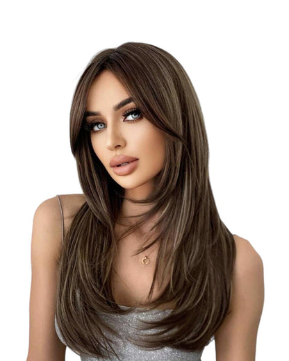 Dark Brown Multi Tonal Blonde Highlights Long Layered Wig