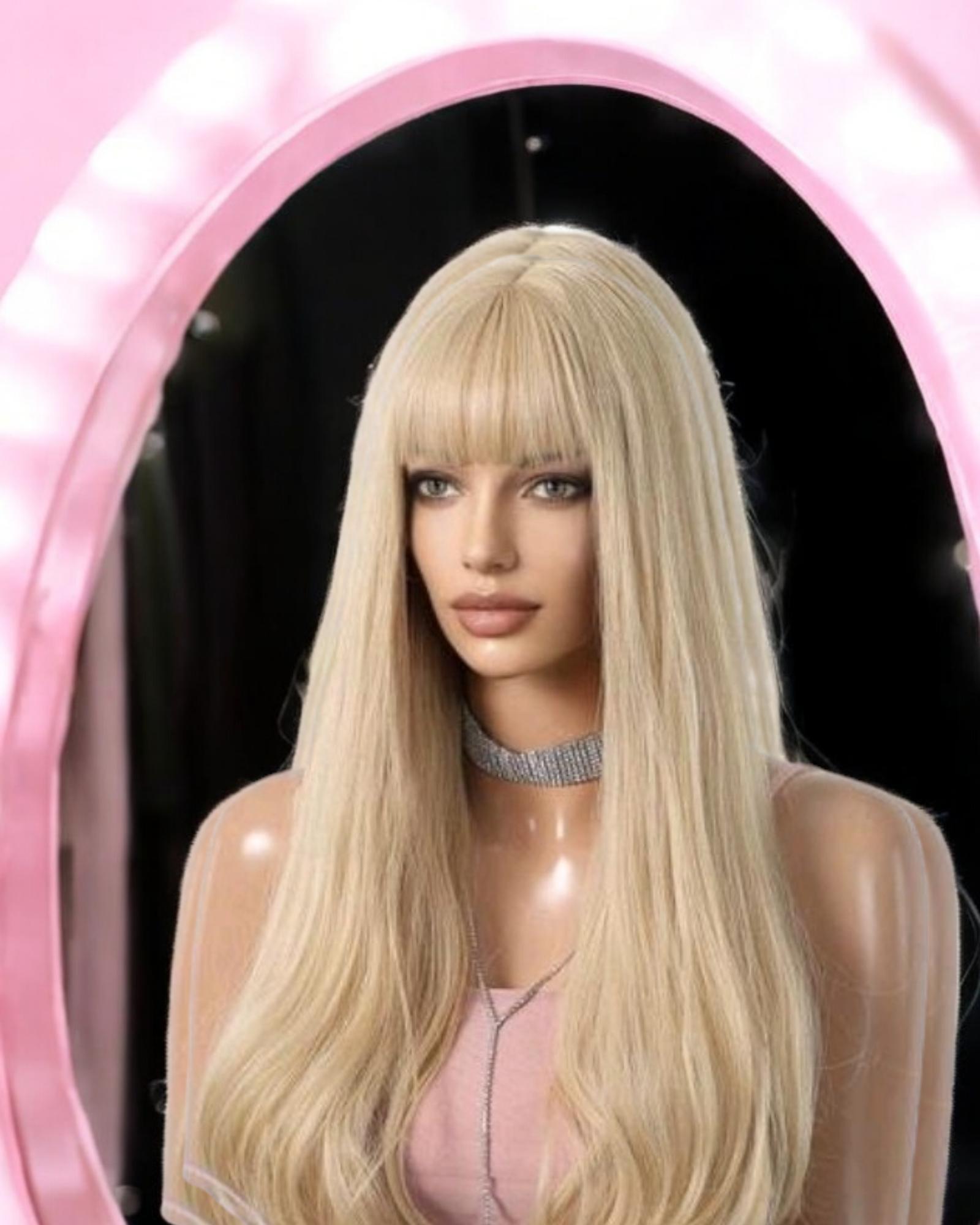 This blonde beauty has the most gorge full bangs that give you that cute and chic look we all adore riiite. It’s super long and flowy, just like the locks of a real-life doll! Perfect for when you wanna go full-on girly glam or just add a pop of Bubblegum pink to your everyday slay. 💅