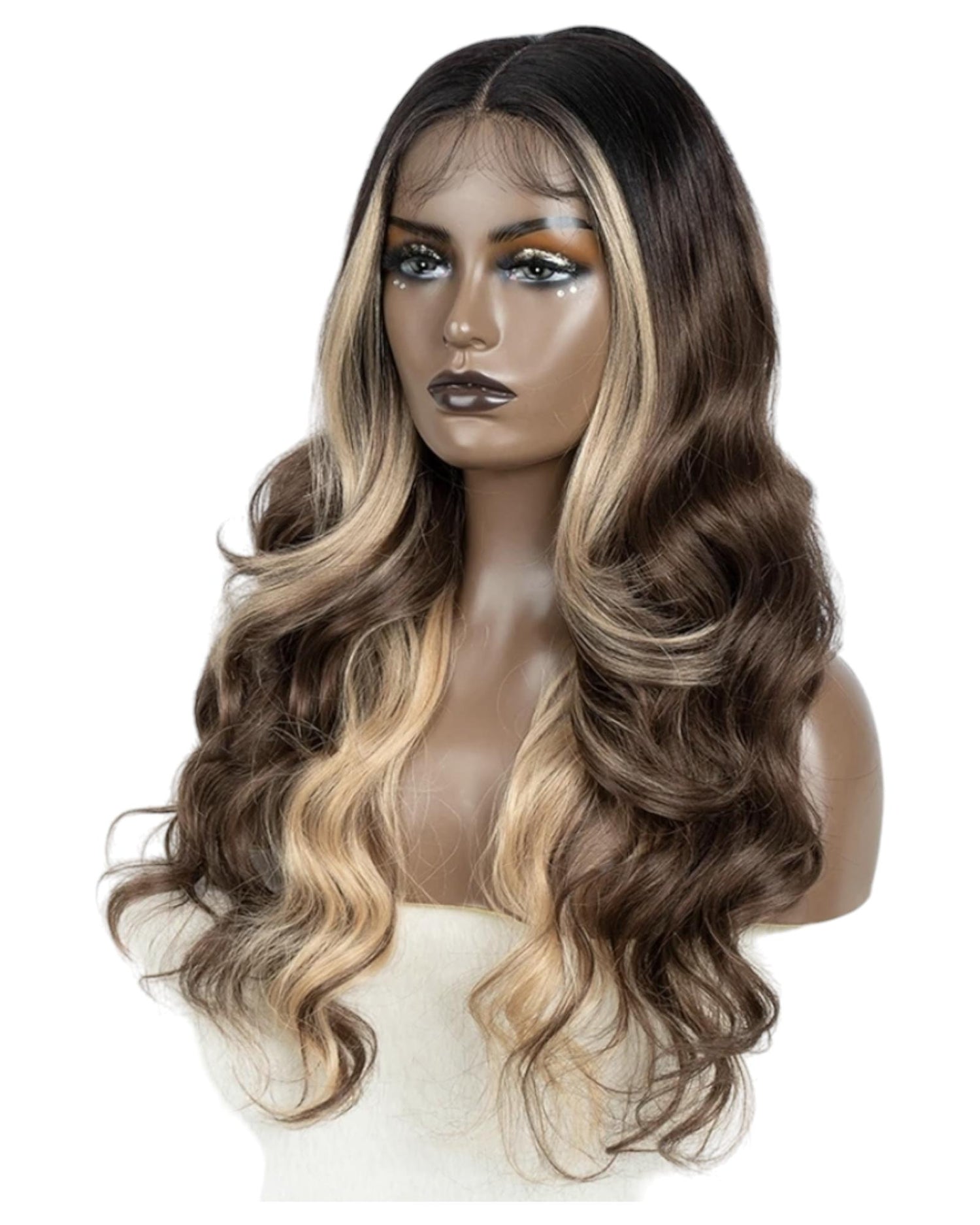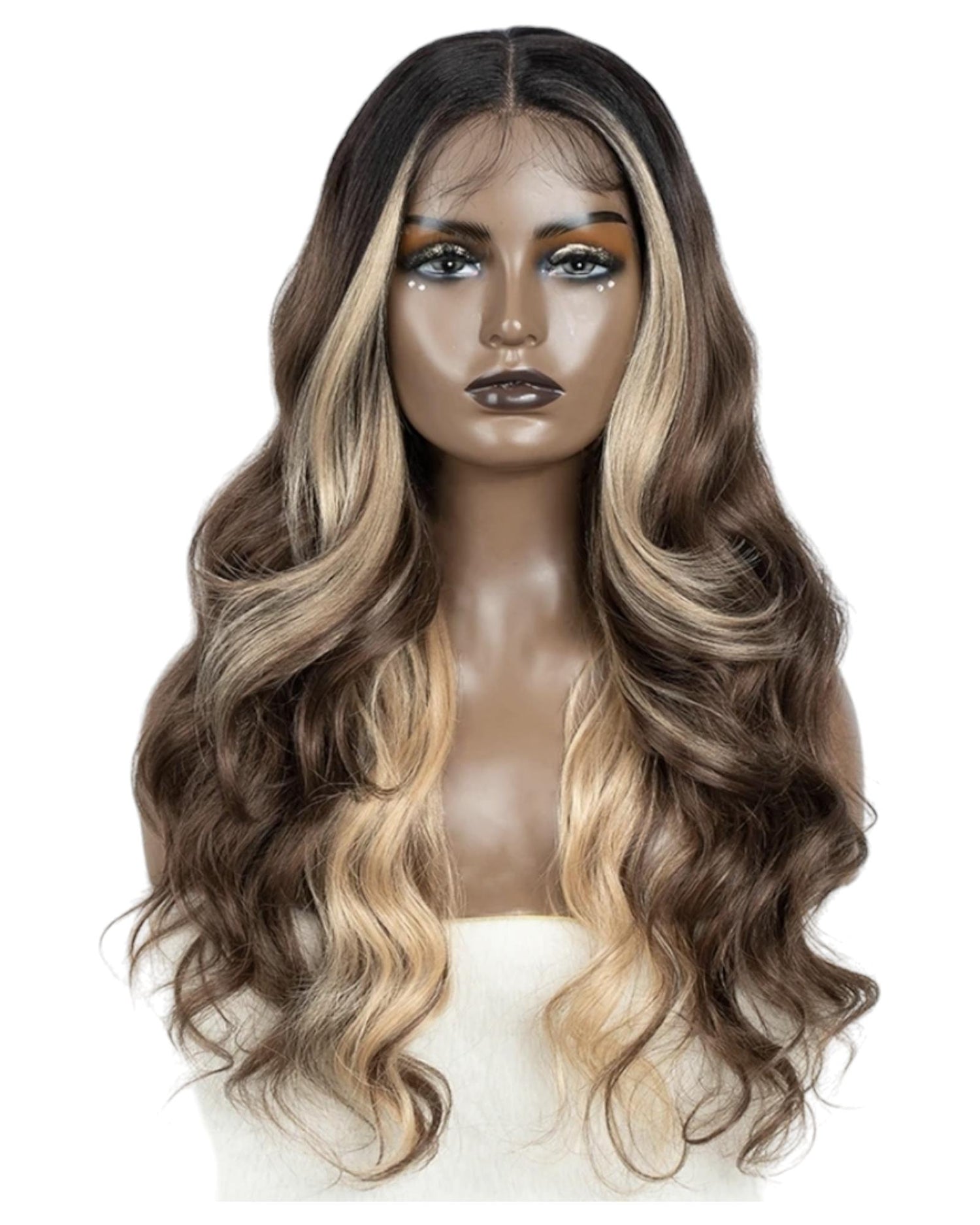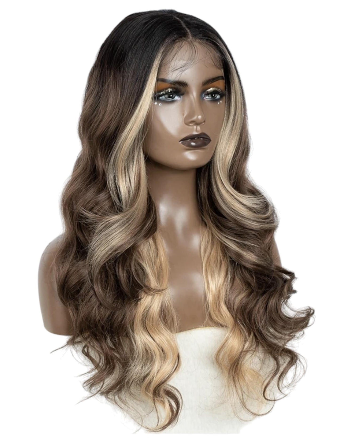Ombre Brown Middle Part Lace Wig Blonde Bangs. Mila
