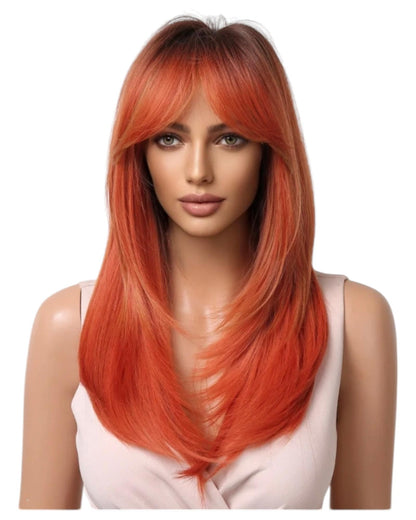 Orange Ombre Straight Layered Long Fringe Bangs Wig. Ally.