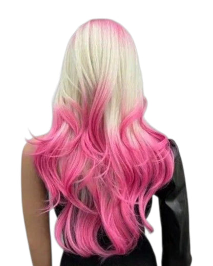 Lightweight synthetic heat styleable fibre, soft and holds its shape with minimal fuss. Tipped ombre pastel Pink and blonde