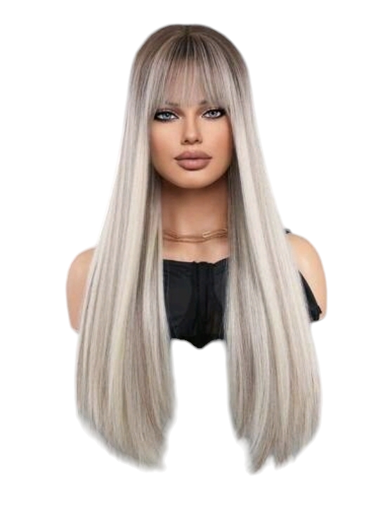 Platinum Blonde Straight Wig With Fringe. Char