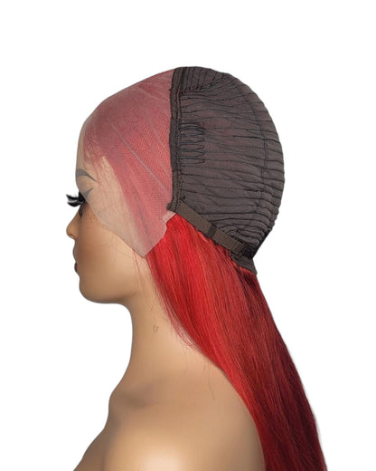 Pillar Box Red 28" Human Hair Lace Front Wig. Ari
