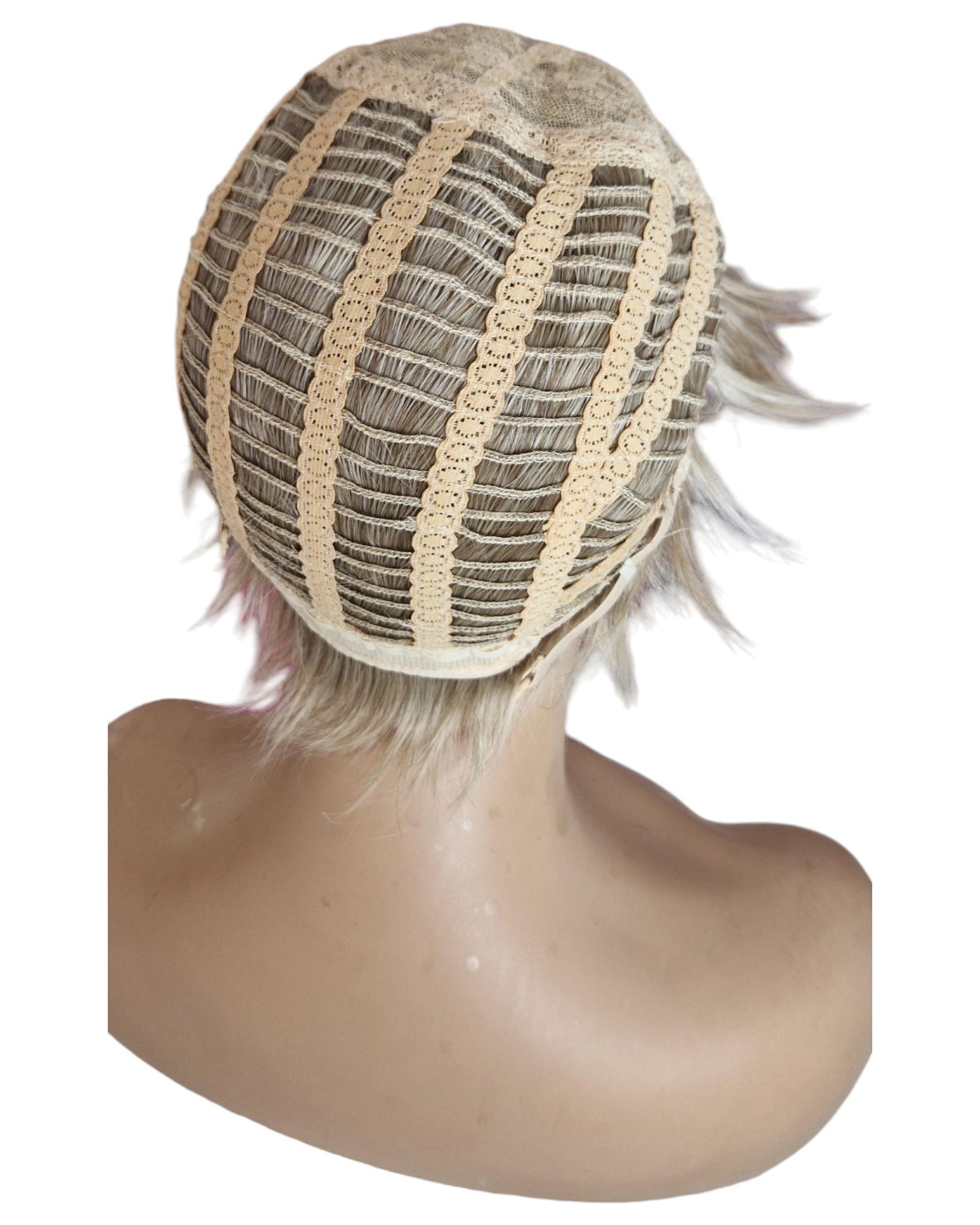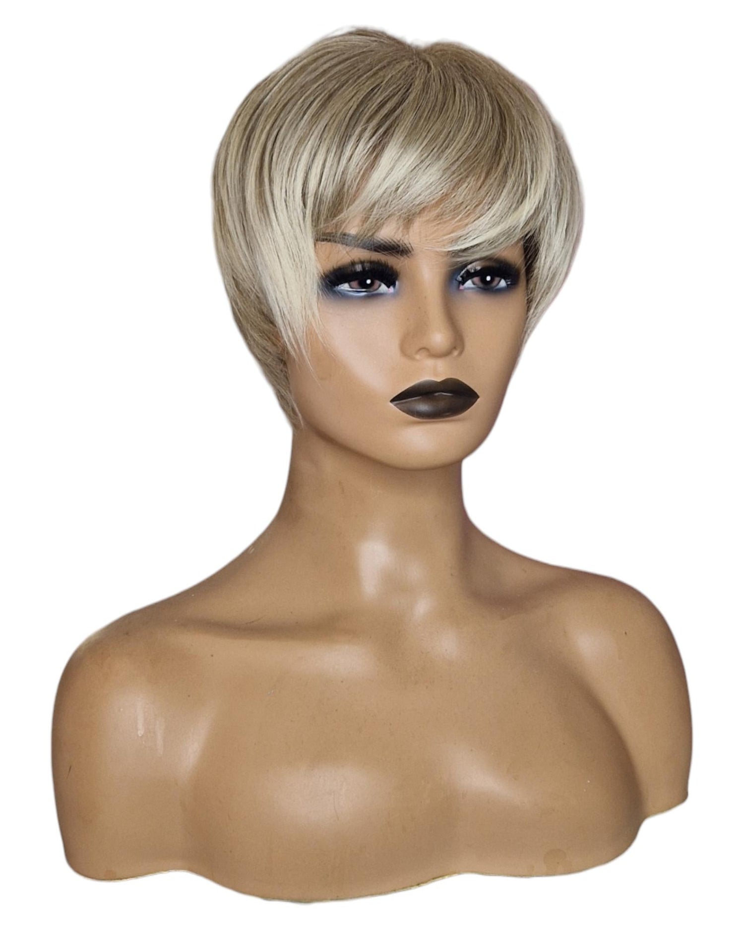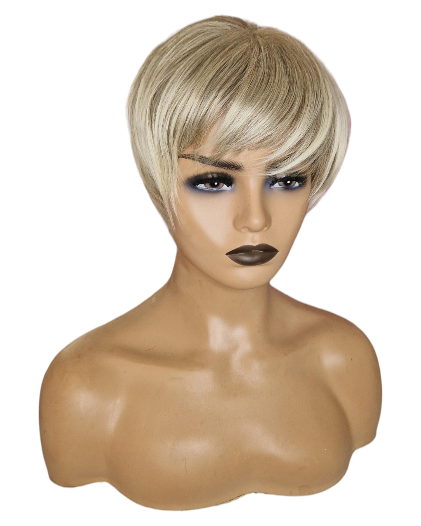 Short yet versatile multi tonal wig which is easy and quick to wear.