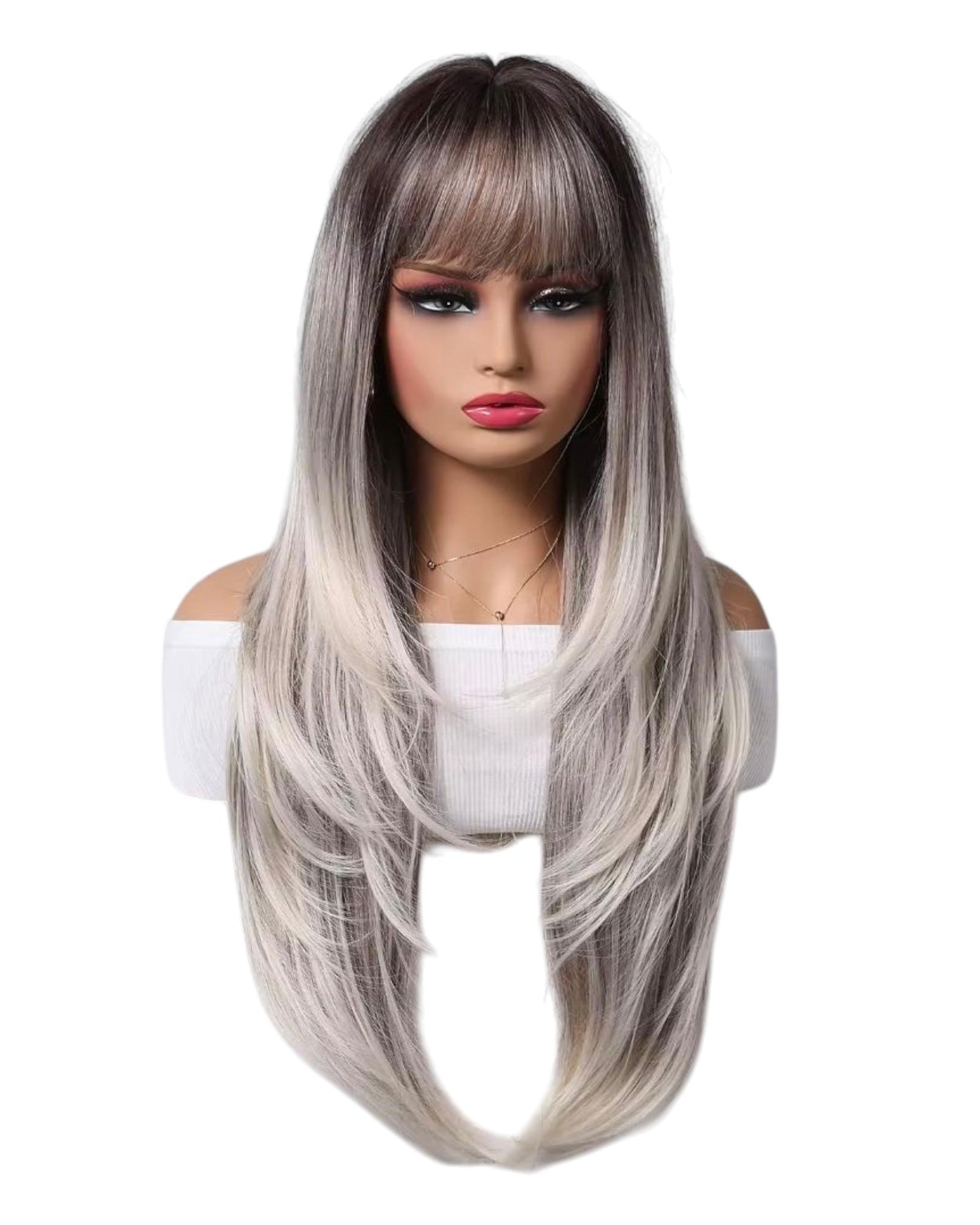 Silver Ombre face framing fringe with layered bangs suitable for all face shapes.