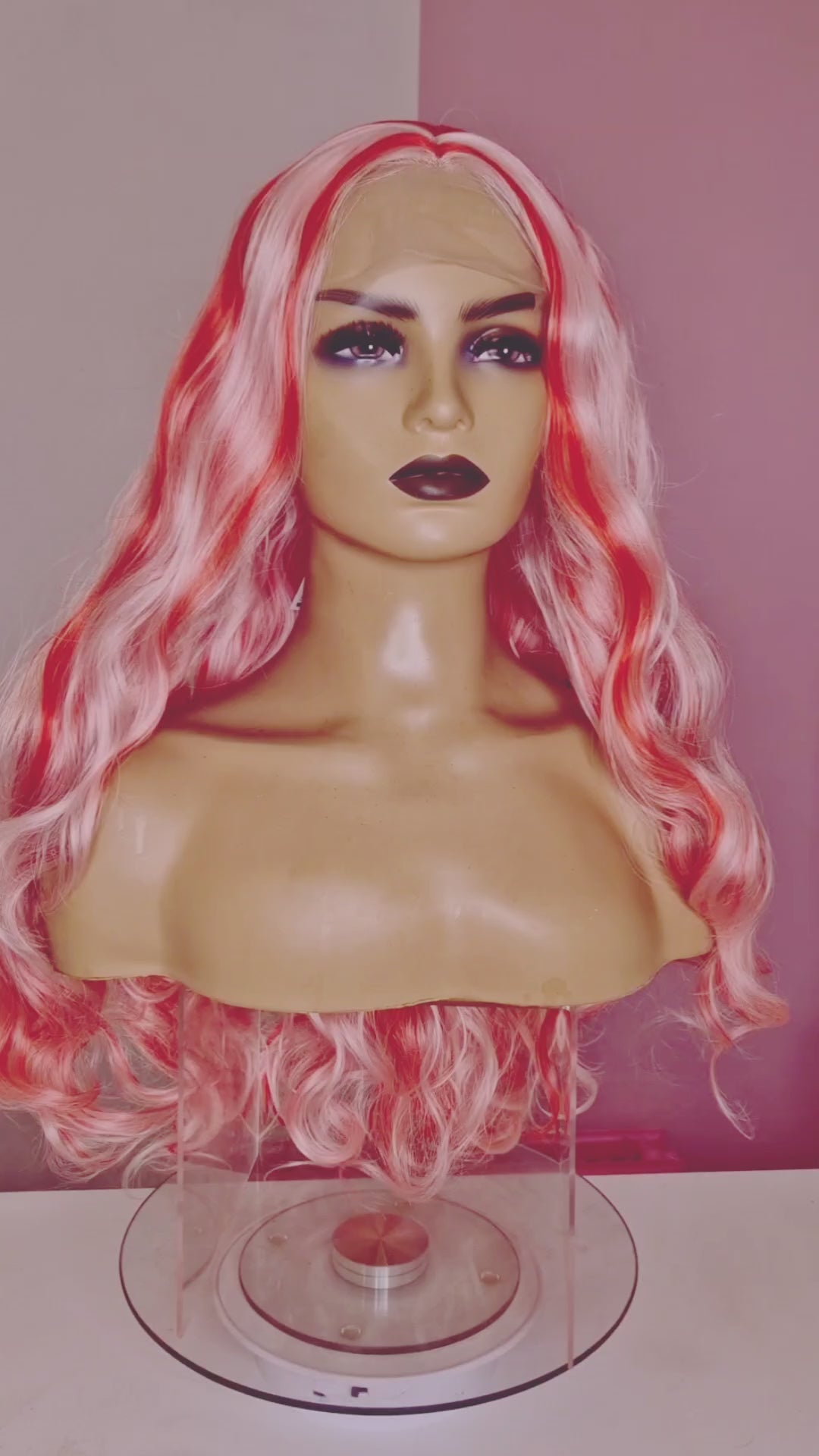 Strawberry Pink Streaked Lace Front Wig. Vox