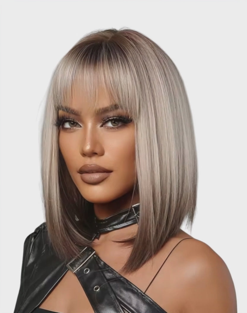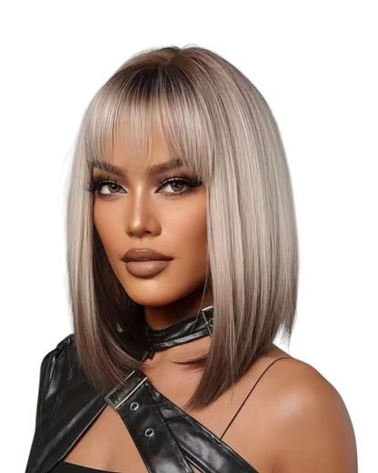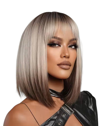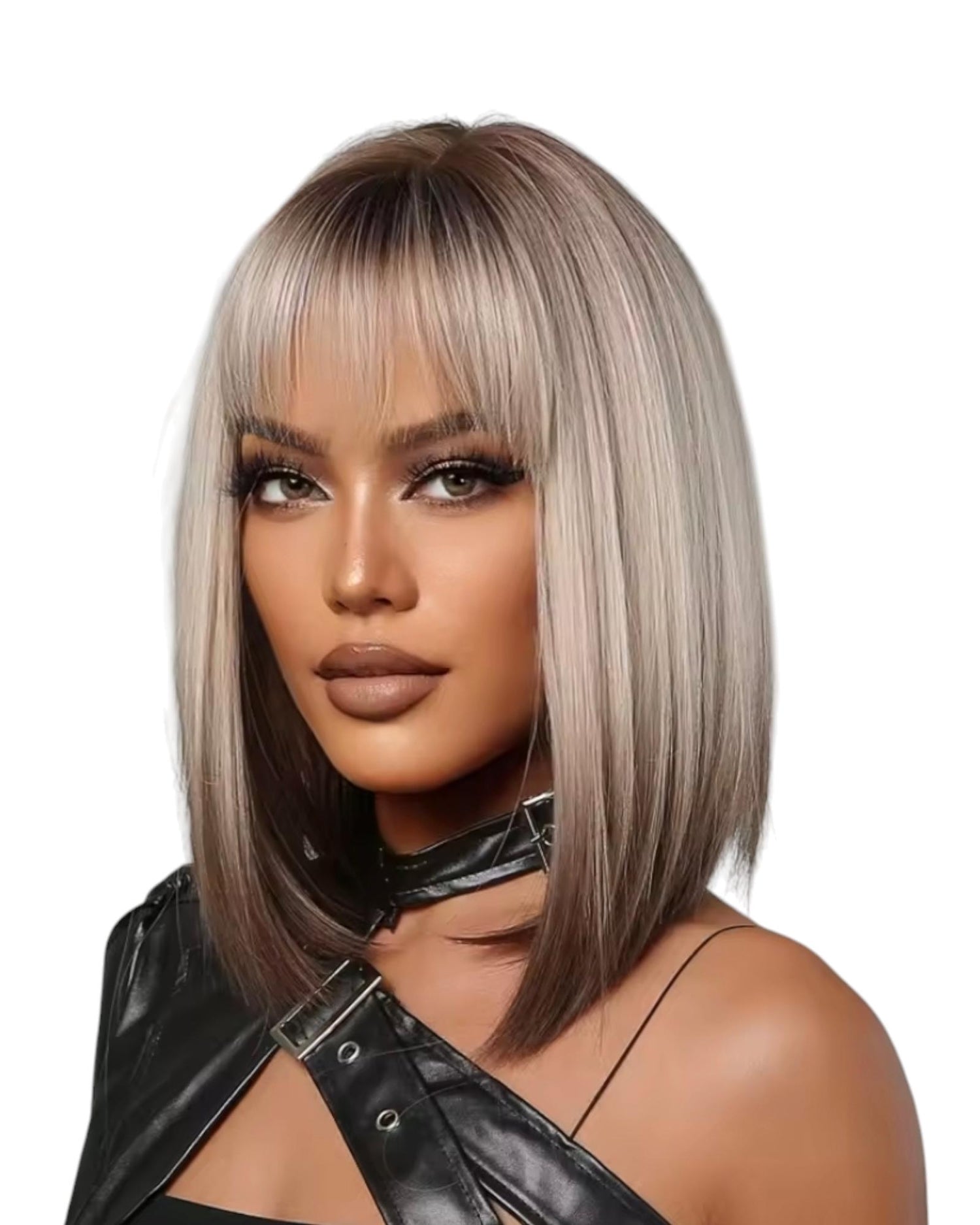 Blonde Bobbed Wig. Rooted Blonde to Brown Ombre Tips. Zoey.