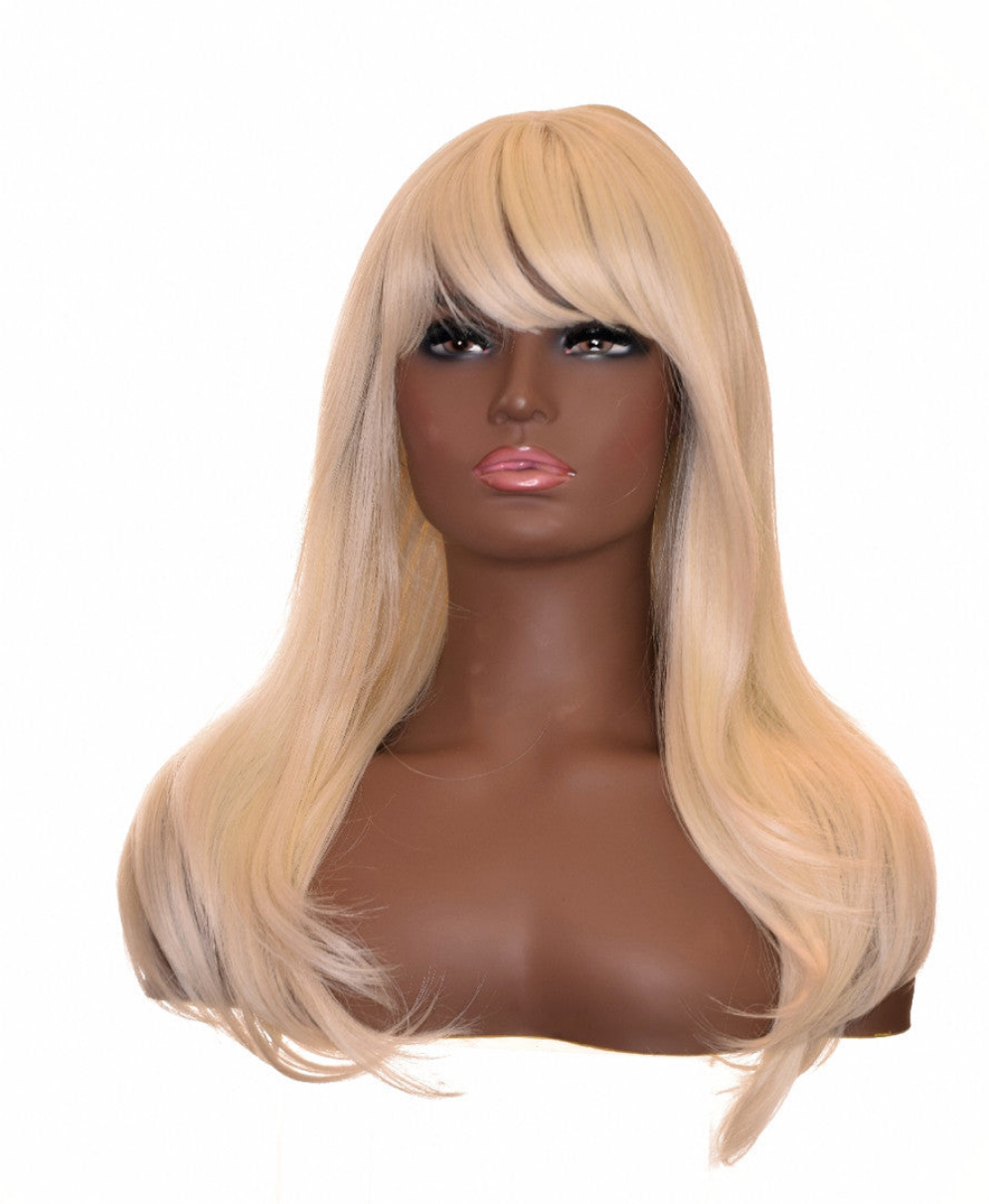 Platinum Blonde Wavy Wig With Bangs. Bardot Wig